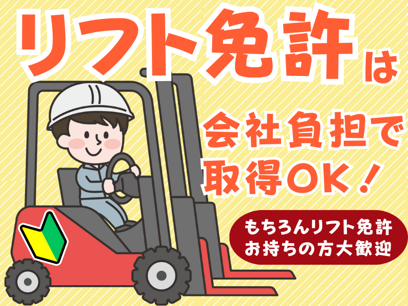 求めている人材 ★学歴・経験・資格不問 ★未経験者歓迎 ★第二新卒歓迎 ★フリーター歓迎 ★社員登用制度あり ⭐フォークリフト免許も入社後に 全額会社負担で取得できます♪ (もちろんお持ちなら大歓迎!)