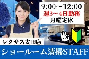 インフォメーション 《9時~12時/週3日~4日/午前中だけ3時間》午後は自分の時間に!家事・趣味・推し活と両立できる扶養内パート◇未経験者歓迎 高級国産ディーラー とてもきれいなショールーム 《レクサス高崎》 ご来店頂いたお客様におくつろぎ頂けるよう 店舗内をきれいにするお仕事です 経験不問!未経験OK! 子育てや推し活など プライベートと両立しやすい 勤務時間と日数です♪ \ ご応募お待ちしております / アピールポイント ◎午後の時間を有効活用 9時~12時迄のお仕事 ◎プライベートと両立OK 週3日程度のシフト勤務 ◎無理なく働ける短時間勤務 ◎安心の扶養内 ミドル世代・シニア世代・主婦活躍中! 初めての方でも丁寧に指導しますので 安心してご応募下さい♪ \ ご応募お待ちしております /