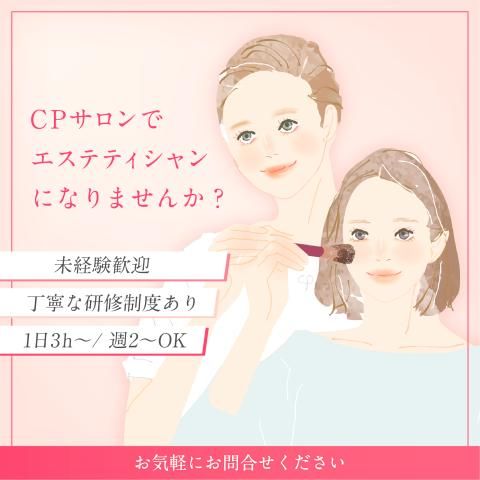 未経験から始めることができる/化粧品やお肌の知識・技術が学べる/お友達にもお勧めできる商品がたくさん ★2026年夏、新規サロンオープンに伴いスタッフ増員中! 自分に合ったお仕事時間で楽しみながら『お肌の知識やエステ&メイクアップの技術を働きながら習得♪』 しっかりとした研修制度があるから、初心者さんも安心 お肌に関する知識やメイクアップ方法など・・・。 働きながら、フェイシャルエステ・メイクの美容スキルを身に付けられます 確かな収入を確保しつつ、自分磨きもできて一石二鳥 「もっと毎日を充実させたい!」そんなあなたをお待ちしています。 働き方については柔軟に対応♪ プライベートなご都合を優先して頂いて構いません 何かあれば、気軽に相談して下さいね。