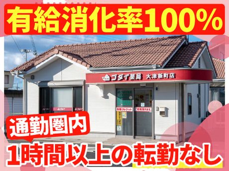 仕事内容 【仕事内容】 <資格・経験不問!未経験OK!> <20代・30代・40代の方が活躍できる職場です> <シフト勤務により学校行事や子供さんの事情も考慮していきます> 調剤部門における受付事務(医療事務)、 レセプト請求業務、精算業務、その他集計業務 専門知識は先輩スタッフの指導のもと、身に付けていけるので安心です。 <内容としては・・・> ・患者様の受付・対応など接客業務 (患者様を笑顔でお迎えし、処方せんを受け取っていただきます) ・患者様のデータや処方された薬などの情報をPC入力 (専門知識がなくてもPC入力できる方なら可能です) ・保険請求のための書類作成やチェック など ・処方せんの受取や保険証の確認 など 《メリットたくさん!働きやすい環境です!》 ・有給休暇消化率100%! ・通勤圏内1時間以上の転勤なし! ・他部門への転勤なし! ・シフトは毎月提出! 「この日は夜予定があるから早番」 「この日は午前中に病院に行きたいから遅番」などもOK! □■□ゴダイ薬局の魅力ポイント□■□ ・有給休暇もあり、取得できます! ・バイク/車通勤もOK!(規定に基づき交通費を支給) ・従業員割引制度が充実!(詳細下記) □■□お得にお買い物!従業員特別購入制度!□■□ 医薬品・化粧品・日用品などの 当社で取り扱いしている商品を購入時は 従業員割引&ゴダイポイントの倍率UPで お得にご購入していただけます! 医薬品:一般用医薬品全般 化粧品:エルクシール・マキアージュ・メイベリン・プリマヴィスタなど 日用品:ボディーソープ・シャンプー・衣料用洗剤・住居用洗剤など ※一部対象外商品あり