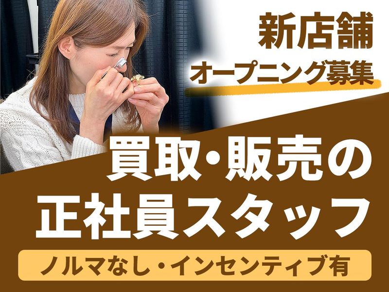 求めている人材 <未経験・経験者ともに歓迎!> ★学歴不問、 性別不問 ★第二新卒歓迎 ★20代~50代まで幅広く活躍中! <以下いずれかに当てはまる方は優遇> ・リユース業界の経験者 ・営業や接客の経験者 ・英語や中国語が話せる方 ・普通自動車免許お持ちの方 ~求める人物像~ やる気や人柄を重視します! ◎人とのコミュニケーションが好きな方 ◎同僚を思いやれる協調性を持った方 ◎素直な気持ちでお客様や同僚に接することができる方 ◎人に言われて動くより、自分の考えを持って行動する方 ―――――――― 先輩の前職例 ―――――――― ・大手時計メーカー系列会社の販売促進・商品企画 ・各種リユース業経験者(ブランドに限りません) 総合・本・家具・アパレル・ブランド・ジュエリー、 貴金属、古銭、時計、ホビー、家電、骨董など ・靴、アパレル衣料品の販売スタッフ ・有名コーヒー専門店、バリスタ ・コンカフェのスタッフ ・物流ドライバー ・不動産関連 ・販売スタッフ ・オープニング接客スタッフ 異業種からの転職者も大歓迎です! ―――――――― キャリアステップ ―――――――― 一般のスタッフからスタートし、 主任⇒店長代理⇒副店長⇒店長の流れで昇格を目指します! 店長以降は複数店舗の管理職(課長、部長)など 職階を設けています。 ▼これまでの実績 ◎入社2年目・35歳/店長代理に就任、3年目で店長に就任 ◎未経験入社3年目・31歳/店長代理職として店舗責任者 ◎未経験入社3年目・51歳/店長代理職として店舗責任者 ※様々な店舗で経験と実力を付けてから、 店長代理、店長を目指します。 ―――――――― 会社について ―――――――― 当社はブランドリユースの全国チェーン店 「キングラム」に加盟、新店舗を含め4店舗を運営しています。 単なる買取店ではなく、販売にも力を入れたクリーンで 魅力ある売り場を展開しています。 再開発ビル内新築物件における新店オープンに備え、 ジュエリー、ブランドを扱うスタッフを募集します。 また、自社開発した新業態、 食器のリユース専門店「食器館」を運営し、 国内外のお客様からご好評を得ております。 75年に及ぶ社歴の中で一貫して小売業を展開、 これからも発展を目指します。 ▼下記キーワードでお探しの方も歓迎! リユースショップ / 買取専門店 店舗スタッフ / 接客販売 査定業務 / ブランド品 / 貴金属 中古市場 / リサイクル 店舗運営 / インセンティブ ▼下記駅名でお探しの方も歓迎! 市川駅・新小岩駅・平井駅・篠崎駅・船堀駅