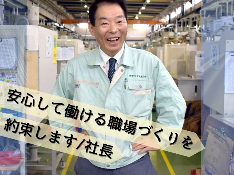 仕事内容 \安定の正社員採用です/ ・電気自動車(EV車)等にも使用される製品 ・今後の会社を築く次世代の仲間を募集 ・週休2日制、他連休もしっかりあり ・昇給、賞与など福利厚生充実 ―――――――――――――――― モノづくりを通じて社会に貢献する ―――――――――――――――― 創業43年、信頼される製品を創り続けることをモットーとしています。モノを作るための元となる金型の製作、形にする成形技術を柱に成長してきました。その技術力や実績が、大手自動車メーカーに認められ、電気自動車(EV車)や水素燃料車(FCV)、自動運転の車の部品にも使用されるなど、これからの時代を担うものに使用されています。経験者であれば培ったスキルや知識を存分に発揮して頂きたいですし、何等かの自動車部品の機械オペレーターの経験がある方なども歓迎です。 ―――――――――――――― プラスチック部品を製造します ―――――――――――――― お願いする仕事内容は、自動車に使用されるプラスチック部品の製造です。(成形部)金型部で作られた金型を機械に取り付け、溶けたプラスチックを型に流し込みます。自身が手掛けた自動車部品が実際に街中を走る。社会に役立つ、素敵な仕事です。モノづくりに集中できる環境で作る楽しさ、面白さの醍醐味を感じてみませんか。業務上、コミュニケーションをとることが多いため、日本語が話せる方を募集しています。 ――――――――――――― 愛工流!ブラザー制度で教育 ――――――――――――― 当社へ入社される方は経験があってもなくても未経験者として一から教えるのが愛工流です。入社後は『ブラザー制度』で基本的なことはしっかり教えます。何でもすぐ聞けるから質問攻めにしても大丈夫(笑)!従業員同士仲が良いし協力的で、気持ちよく働ける職場ですよ!定着率抜群◎ ――――――――――――――――― 成形部の先輩、こばやしを紹介します ――――――――――――――――― 転職してきてから収入が上がった小林は家族が嫌な顔をしなくなったおかげで遠慮なく趣味の時間を満喫できるようになったそうです(笑)。子どもの習い事も増やせるようになりました。普段から目的や目標をもって、まじめに一生懸命に勤務する従業員が多いのも当社の特徴です。 ――――――――――――――――― 有給休暇も遠慮なくとれる働きやすさ ――――――――――――――――― 連休で旅行へ行ったり、子の学校行事にも参加する社員も。プライベートの時間も充実できるからこそ定着率もよく、十年以上の勤務者が多数います。他にも、残業は月平均20時間。自転車や徒歩で通う方にも距離に応じて交通費を支給。子どもが20歳になるまで、また配偶者が勤務していても家族手当を支給。250円でおいしい仕出し弁当も食べられます。 ―――――――――――― 最後にあなたへメッセージ ―――――――――――― 最初は会社や機械や道具のことなど少しずつ慣れていきましょう。あなたがこれまで培ってきた経験や知識もぜひ私たちに教えてください。あなたの当社での活躍が会社の成長に良い影響を与えてくれることを期待しています!