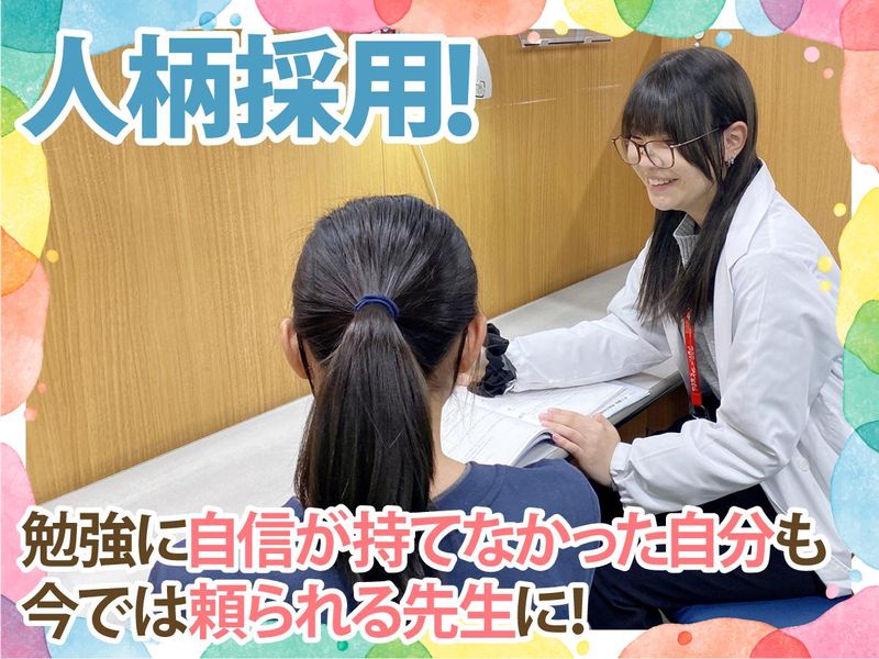 職場環境 <いいイメージで「先生」デビューができます!> ✔ 最初は先輩の授業見学からスタート ✔ いきなり一人で任されることはありません ✔ 困ったら教室長がすぐフォロー 喫煙所:なし(敷地内全て禁煙)