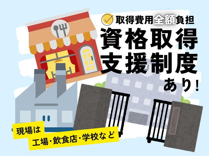 仕事内容 ━━━━━━━━━━━━━━━━━━ 社会貢献度の高い仕事 害虫駆除や環境改善を行います ━━━━━━━━━━━━━━━━━━ 工場、飲食店、一般家庭 商業施設・学校等を対象に 害虫駆除や環境改善を行うお仕事! その他、新築現場や既設現場に伺い 防蟻・防腐処理を行う仕事もあり。 様々な建物の空間を快適に! 確かな技術を身につけながら やりがいを感じて働けます! <<具体的には>> ・発生要因特定の器具設置 ・薬剤散布 ・害虫進入路の封鎖(簡単な工事) *1日2~4件の現場を巡回します。 作業は基本的に2人1組で 大型現場の場合4~5人で 作業する事もあります。 営業や作業ノルマ等は一切ありません。 今いるスタッフは全員未経験スタート! 移動は社用車を使います。 *。・*・。*。・*・。*。・*・。*。・*・。*。・ << 一生モノの技術が身に付く!>> 害虫駆除や消毒など衛生管理には 様々な資格があります。 現場で経験を積み、 幅広く活躍してください。 頑張った分はお給料で還元、 技術は一生モノ。 必要な資格取得費用は当社で全額負担! *。・*・。*。・*・。*。・*・。*。・*・。*。・ . *勤務地:太田営業所もあり .