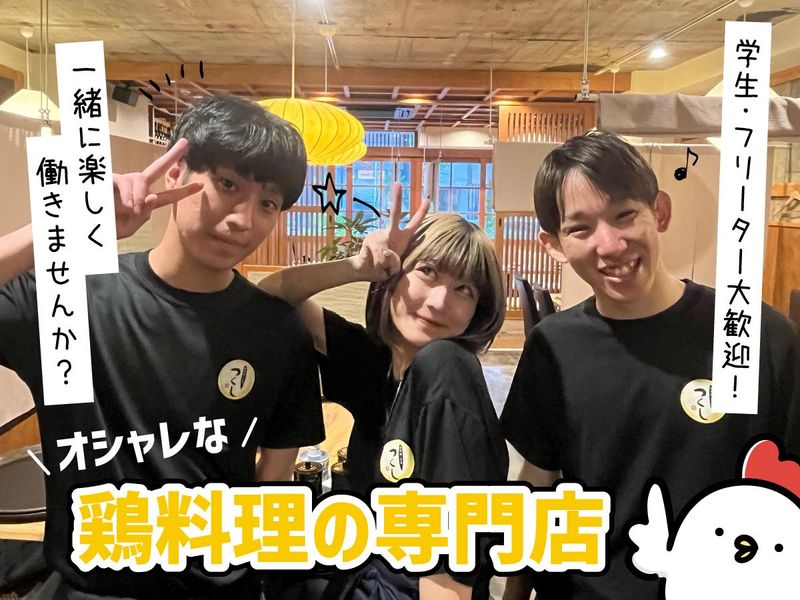 仕事内容 ★この求人のPOINT★ >学生スタッフ多数 和気あいあいとした職場です。 友だちが見つかること間違いなし! 気さくな人柄の店長で とっても明るいお店です。 >髪色、髪型自由! ネイル、ピアスもOK! お洒落も楽しみながら 働ける職場です。 >無料でおいしいまかない! スタッフからも大好評です◎ ー 2024の3月にOPENした 「鶏料理 焼き鳥 つくし」です! 今年でオープンから1周年。 和の雰囲気がお洒落なお店で 一緒に働いてみませんか? ◆お仕事の内容 ホール業務のほか、 キッチン業務をお願いします。 <具体的には> ・注文を受ける ・料理運び ・お会計業務 ・簡単な盛り付け など スタート時給は相談OK! フルタイムや週4日以上の レギュラーワークをご希望の方は スタート給与相談OKです! どんな働き方がしたいのか、 どれくらい稼ぎたいのか等 お気軽に相談くださいね。 頑張りはしっかりお給料に反映♪ 出来ることがどんどん増えて お店への貢献度が高くなれば 随時どんどん昇給していきます! <アクセス抜群!> 新栄町駅、千種駅から徒歩5分! 駅チカだから通勤も便利! 学校帰りにバイトしてくれている 学生スタッフがたくさんいます♪ 学外で仲間を作るチャンス! 是非つくしで楽しくバイトしてみませんか?