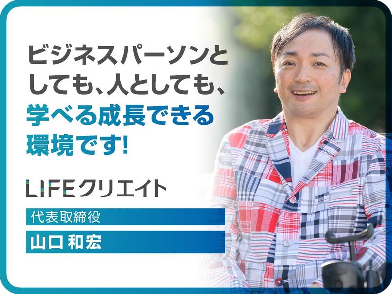 選考プロセス エントリー ▼ 書類選考 ※通過された方に 面接日などのご連絡いたします。 ▼ 面接(WEB面接可能) ※面接日時はご希望を考慮します。 ◎面接はお見合いの場だと思って 何でも遠慮なく聞いてください。 ▼ 内定 ※入社日は相談に応じます。 【HP】 https://life-create-shine.co.jp/