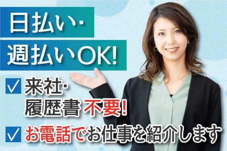 選考プロセス 平日10~19時の間のWEB応募には 応募確認後スグに入力頂いた電話番号に06-6225-8324から連絡します。 その際にシフトや開始日等の希望をうかがい、お仕事を紹介します。 ※連絡時にご不在の場合は携帯番号を入力頂いている場合はショートメッセージをお送りします ※土日祝や10~19時外の応募は翌営業日に連絡します 【問合せ先について】 問合せ先:06-6225-8324 ☆不明な点やもう少し詳しくお仕事の確認をされたい場合などは お気軽にお問い合わせください。 ●弊社営業時間:平日10~19時 ※営業時間外でも対応可能な場合もあります。 応募方法 来社&履歴書不要! 必要事項を入力の上、【応募する】ボタンよりご応募下さい。 電話での応募も受付中! お急ぎの方は下記番号よりお電話をお待ちしております。