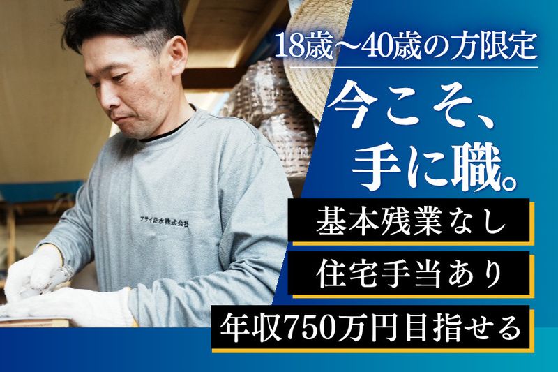 【仕事内容】 防水・外装リフォーム会社の作業スタッフを正社員募集! 【18歳~40歳以下の方限定(高所作業/例外事由3号イ)】 ───────────────────── ▶ 経験資格ゼロから、スキルが身につく ▶ 基本残業なし+長期休暇でプライベート充実 ▶ 給与現金手渡しOK/住宅手当・資格手当あり ───────────────────── 【仕事内容】 マンション・住宅の屋上やベランダ、バルコニー等の 防水・外装メンテナンス工事に関する作業スタッフ業務をお任せします 具体的には… ・防水シートの貼り付け ・外壁/屋根の塗装補助 ・作業前の準備や片付け ・点検/調査/アフターメンテナンス対応 など |未経験OK ▶ 丁寧なOJTでイチから指導!基礎から学べます ▶ 必要なものは全て支給!もちろん手ぶらでOK ▶ 国家資格取得までをしっかりサポート!! 建築物の防水工事に関する技能の国家資格である「防水施工技能士」資格取得を目指せます! 保有資格に応じて、キャリア・給与もUP! 建設業界で長く働ける、一生モノの技術が身に付きます! 独立支援もあるので、ゆくゆくは自分の会社を持ちたいという方も応援! |キャリアアップ(例) 2年目 年収420万円:社内技術試験に合格(技術主任) 3年目 年収560万~650万円:「2級 防水施工技能士」取得(現場責任者) 7年目 年収600万~750万円:「1級 防水施工技能士」取得(技術部長) \作業スタッフの魅力ポイント/ ───────────────────── ▶完全未経験からスタートOK サポート体制◎専門スキルが身につく! ▶チームワーク抜群 20代若手~ベテラン層まで幅広く活躍中♪ ▶ライフステージの変化にも対応♪ 基本残業なし/長期休暇あり/家族手当/住宅手当等 ▶職場見学OK!事前に働く職場を確認できる! 履歴書不要でカンタン応募OK ───────────────────── 【アサイ防水について】 地元大田区を拠点として地域密着型の防水工事企業! 国家資格保持者による高品質施工と住宅リフォーム助成事業の活用にも対応しています お互いにフォローやサポートをし合いながら、 楽しく働けるよう、社内のチームワークを大切にしています! 防水工事の作業スタッフが気になった方はお気軽にご応募ください!