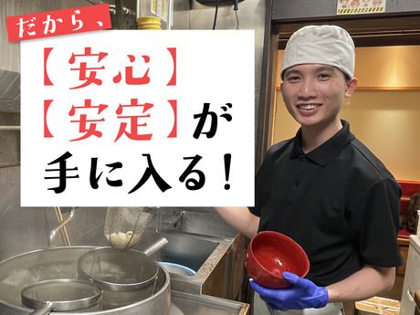 仕事内容 \家族亭のココが魅力/ ■未経験・初心者OK! ■あなた専属の教育担当など手厚い研修! ■1分単位で残業代支給! ■店長や男性も産休・育休取得実績あり ■東証プライム上場のSRSグループ! ■食事手当や従業員割引制度など福利厚生充実! ■平均勤続年数18年!  ̄ ̄ ̄ ̄ ̄ ̄ ̄ ̄ 【 仕事内容 】 ________ 家族亭の店舗スタッフとして、 キッチン・ホールどちらもお任せします。 キッチン業務からはじめ、 料理を覚えたあとはホール業務も担当いただきます。 <研修について> (1) 本社キッチン研修(2日間~4日間) ・天ぷらの揚げ方などを習得。 ・完全マニュアル化! =誰でも同じように完成できるようになります。 (2) 店舗キッチン研修(4日間) ・あなた専属の本社の教育担当つき! =分からないこともスグに聞ける環境です。 ・徐々に丼物調理・そば調理・洗い場を覚えていきます。 ・・・・・・・・・・・・・・・・・・・・・・・・・・・・・・  ̄ ̄ ̄ ̄ ̄ ̄ ̄ ̄ 【 スタッフの声 】 ________ <中途入社7年目/Sさん> これまで飲食店を6社経験し 家族亭は7社目になりますが、一番長く続いています。 入社理由でもある充実した福利厚生や 教育制度が長く続けられる理由です。 前職はホール中心でキッチンは 得意ではなかったのですが 家族亭では入社時にトレーニングセンターで 詳しく作り方を教えてくれますし 安全意識や衛生意識まで教育をしてくれるので、 不安なく業務に取り組めました。 複数店舗を経験できるので 多数の先輩から様々なやり方を学ぶことができ 日々成長を感じながら働けます。 今は店長としての新たな目標があり、 自分自身も成長のステップを踏みながら 飽きずに働き続けられる環境です。 最初は覚えることが多く大変ですが、 お客様からの「ありがとう、おいしかった」のお言葉は 大きなやりがいで、あっという間の7年間でした。 転職活動に悩まれている方は、 ぜひ一度家族亭に飛び込んできてください! ・・・・・・・・・・・・・・・・・・・・・・・・・・・・・・ 家族亭のキャリアパス 一人ひとりのご希望やペースに合わせて、 幅広いキャリア選択をご用意しています。 3年目:主任に昇格 5年目:店長に昇格 ★給与UP! 10年目:7~8店舗を束ねるエリアマネージャーに昇格(年収560万以上!) 中途入社でエリアマネージャーに昇格した先輩も複数名います○ 【他にもキャリアの幅は多数!】 年収650万以上の営業部長への昇格 年収740万以上の事業部長への昇格 本社での教育担当業務や店舗開発業務へのキャリアチェンジ グループ企業へ転籍出向 などなど 【過去には…】 コンビニやスーパーのレジ店員、住宅販売系、 音楽関係で働かれていた方など、様々な方が当社でご活躍いただいています! あなたの理想の働き方やキャリアを当社で叶えてください〇