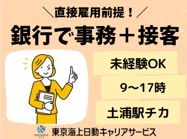 仕事の内容 \地元×銀行で定年雇用/ ◆金融経験は不問◆増員募集 ◆安定感バツグンの環境でキャリアUP! 【基本情報】 雇用形態:紹介予定派遣(契約社員) 雇用期間:長期(3カ月以上) 就業時間:9:00〜17:00(休憩60分) 【必須条件】 ◆パソコン:基本操作(入力〜修正) 【お仕事内容】 ◆銀行支店内で事務と接客 ・伝票起票、端末操作、帳票整理 ・簡単な受付、お客様の誘導など ◆先ずは後方事務から! →徐々にお客様対応もお任せ致します 【環境面等】 ・@土浦駅/最寄り駅から徒歩1分 ・20代・30代・40代・50代の多い職場 └幅広い年代活躍中/子育てに理解ある主婦(夫)が活躍中 └わからないことは質問、確認をしながらオシゴトできる環境です ・オフィスカジュアル(ドレスコードあり) 【福利厚生等】 ・ランチタイムは休憩スペース利用OK └お弁当持参OKです ・社会保険完備 ・定期健康診断あり ・禁煙オフィス!煙苦手な方も安心 ・平日のみOK!土日祝休み ・年間休日120日以上&お休み相談可 └有給休暇