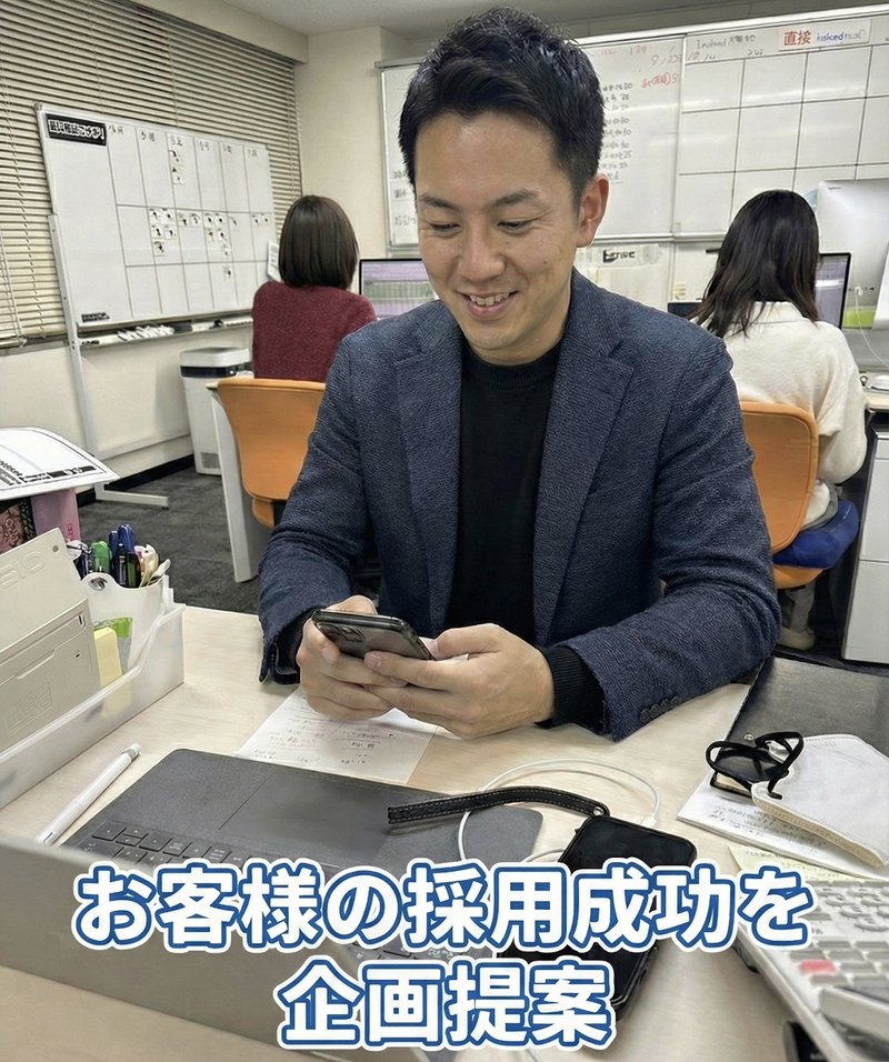 仕事内容 人材採用をお手伝いするための 様々なコンサル・営業提案をお願いします。 扱う商品は「IndeedPLUS」が中心です。 最近ではTikTokやYouTube動画などの 幅広い商材も取り扱っており、 様々なお客様の採用ニーズに応えられる 提案が可能です。 さらに現在は、営業支援システムや AIが導入されており、 営業先の ・企業情報検索 ・営業トーク生成 ・求人票作成 ・分析改善提案といった 業務の一部が自動化されています。 これにより営業は「提案の質」や「顧客との関係づくり」に より集中できる環境となっています。 <1日の流れ:例> 09:00 朝礼 09:15 AIで抽出されたリストをもとにテレアポ 11:00 顧客商談(zoom) 12:00 休憩 13:00 訪問営業(3件) 16:00 帰社、AI分析を活用した提案資料作成・発注 16:45 夕礼 17:00 フォローコール・提案準備 17:45 事務処理 18:00 退社 ■入社後は… 商品や業界の知識、受電・架電対応などを 先輩や上司から座学を通じて学びます。 その後は先輩と同行しながら実践を積み、 AIシステムを活用したテレアポや商談準備を経験。 効率的に情報を集められるため、 **「どう伝えるか」「どう関係を築くか」**に 集中しながら成長していけます。 ■この仕事のスタイル すぐに“契約!”となることは少なく、 出会いを大切にしながら定期的な情報提供や 採用課題に寄り添った提案を続けていきます。 AIが示す改善案をそのまま伝えるのではなく、 **「その企業にとって最適な形に翻訳する力」**が求められます。 信頼関係ができると「ちょっと相談があるんだけど…」と 声をかけてもらえるようになりますよ。 ■先輩社員に聞いた! この仕事の大変なところ&やりがいは? 慣れるまではテレアポ件数や訪問件数を こなすのに苦労するかもしれません。 またAIがサポートしてくれる部分は増えていますが、 お客様の本当の課題をヒアリングし、 「どの媒体をどう運用するか」を企画する力は 営業にしかできない重要な役割です。 その分、お客様の採用成功につながった時は 大きなやりがいを実感できます。