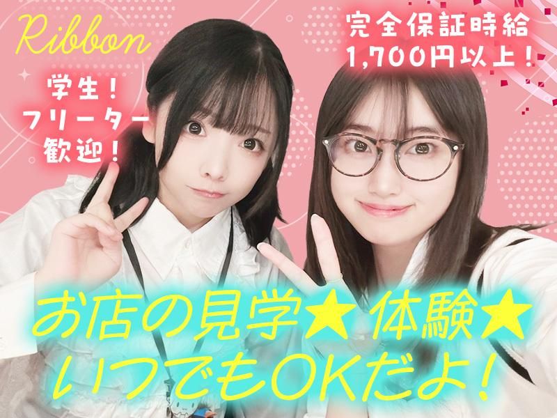 仕事内容 ・。・。・。・。 カフェバーリボン ・。・。・。・。 かわいい衣装が特徴の ユル~く働ける癒し系店舗です♪ 現在は10代~20代のstaffが 中心に活躍中! ――春向けて稼ぎたい方歓迎―― ▼▼▼ \春に向けて/ 飲み会・旅行・テーマパーク・お祭り! 今からお小遣いを稼いで 最高のバケーションを実現しませんか♪ ☆春休みまでの短期もOK! ☆長期で働きたい方も歓迎(*^^*) ――未経験でも大丈夫?―― ▼▼▼ 入店後は先輩が丁寧に お仕事をレクチャー♪ みんな未経験からのスタートだから スグに馴染んでいただけるはず! 接客はカウンター越し& 連絡先交換や営業行為なども一切ナシ! ――プライベート最優先でもOK?―― ▼▼▼ もちろんです♪ 週1日~・シフトも柔軟! 空き時間を有効活用して、 好きなときだけマイペースに働けます★ ▼▼▼ スタッフみんな仲が良く、 毎日楽しく過ごしてます! ストレスフリーなお店で、 一緒にお仕事してみませんか♪ ★――――――★ どんなことをするの? ★――――――★ 「カフェバーって行ったことないし、 よくわからない…(;・∀・)」 そんな方も全然大丈夫♪ やる事と言ったら簡単なドリンクづくりや 楽しくおしゃべりするだけ! 趣味やアニメの話などで 盛り上がることが多めです♪ お客様と一緒に カラオケで楽しむことも! ★――――――★ どんな衣装で働くの? ★――――――★ たくさんの衣装から 好みや気分に合わせて コーディネート出来ちゃいます! ※私服勤務もOK!