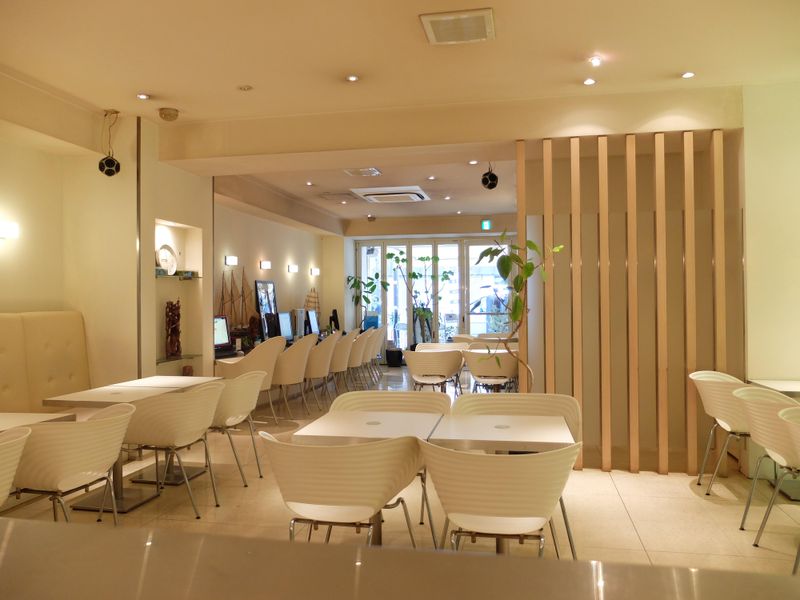 職場環境 お昼の11時~14時前が ピークですが、約20席の店内 を3人で回しますし、ピークを 過ぎれば店内も落ち着くので ゆとりをもって働けますよ。 お客様はサラリーマンやOL、 ご近所に住んでいる方が多いです。 喫煙所:なし(敷地内全て禁煙)