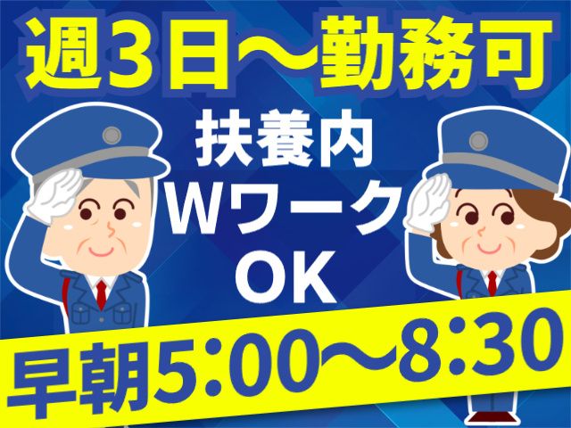 仕事内容 【早朝からの短時間】 1日3.5h・週3日~勤務OKの 警備スタッフ募集! 駅直結なので通勤ラクラクです! 【こんな働き方が可能です!】 ・主婦(夫)さん…扶養内で働く! ・フリーターさん…Wワークを両立! ・ミドル、中高年…体に無理なく週3日勤務! ・シニア…定年退職後のセカンドキャリアとして! 【おすすめポイント】 ・未経験OK ・長期で働ける ・正社員登用制度あり ・幅広い年代活躍中 【お仕事内容】 郡山駅直結の生鮮食品館にて 開店前の施設警備のお仕事です。 ・解施錠業務 ・出入管理業務 ・巡回業務 ・防災盤対応 など 施設及びご利用のお客様の安全を守る、 やりがいのあるお仕事です。 【早朝からの勤務】 勤務時間は5:00~8:30 週3日~勤務OK 駅直結&車通勤OKなので安心です! Wワーク・扶養内勤務OK! 【警備員未経験者活躍中!】 異業種からの転職者も活躍されています。 研修期間もしっかりあり、 先輩社員が丁寧に指導いたしますので 安心して働けます。 【幅広い年代の方活躍中!】 20代・30代の若年層から 40代ミドル、50代中高年、 定年退職後のセカンドキャリアとして働く 60代以上のシニア世代まで幅広く活躍中。 【正社員登用制度あり!】 警備業に必要な資格を取得し、 正社員へステップアップ可能です。 資格手当の支給もあります! 【こんな方にピッタリなお仕事です】 ・人と接することが好き ・社会貢献度の高い仕事に興味がある ・体力に自信がある ・警備業に興味がある ・やりがいのあるお仕事がしたい 「CSP東北について」 地域に根ざした、東北NO.1の警備会社を 一緒に目指す仲間を募集しております。 人々が安心して暮らせる街づくりをしていきましょう! まずはお気軽にお電話ください。