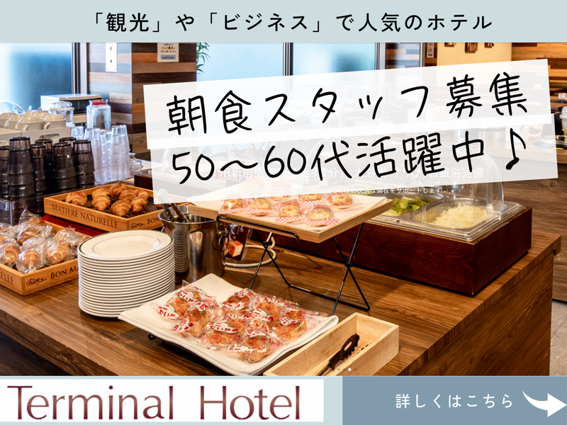 仕事内容 *・・*・・*・・*・・*・・*・・* 朝の時間を有効活用! Wワーク大歓迎 50、60代の方が大活躍中! *・・*・・*・・*・・*・・*・・* <仕事内容> 〇朝食バイキングの準備・補充 〇温めたり、盛り付けする簡単な調理 *調理の経験がなくてもOK 主婦(夫)さん、フリーターさんも大歓迎! 未経験の方も丁寧にサポートします。 【当ホテルは花湯の森グループです】 群馬県、近隣では ・渋川天然温泉 ハナホテル&スパ伊香保インター ・赤城天然温泉ハナホテル&スパ 渋川(8月open) もございます。