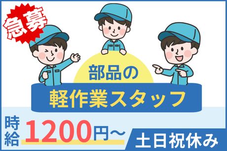仕事内容 【仕事内容】 *倉庫内作業スタッフ* 部品の包装をお願いします★ 未経験の方でもできる単純な作業ばかりです◎ ※女性は小さな部品がメインになりますので、重量物はありません 土日祝休みでプライベート充実♪ 【アピールポイント】 20代~50代の幅広い年齢層活躍中 未経験、ブランクのある方も大歓迎 週払いOK 残業なし 土日祝休み 【勤務地の補足】 茨城県つくば市稲岡