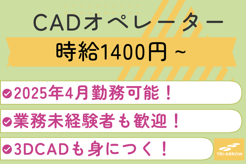 ■職種 土木・建築・設備製図工 ■勤務形態 固定労働時間制 ■雇用期間の定め 定めあり(派遣労働契約) ■URL https://www.tri-arrow.co.jp/ ■更新日 2025年12月11日