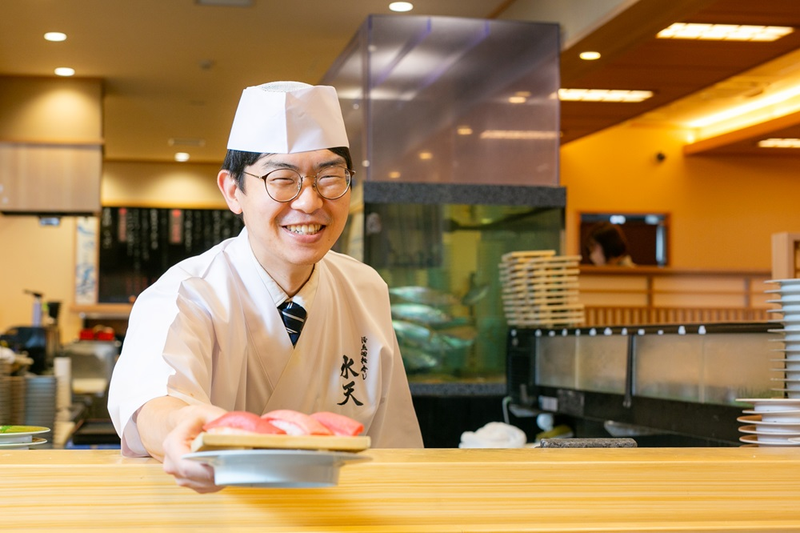 ■仕事内容 回転寿司店の軍艦製造のお仕事です。 職人さんの横で調理してみたい方、未経験の方でも大歓迎です! 【具体的には】 酢飯にのりを巻いてネタを上に乗せるだけの簡単作業です! 握り場で、寿司職人さんと一緒に作業をしていただきます。 カウンター席のお客様の前での作業となりますので、喜ぶお顔や「美味しそう!」のお声を近くで聞くことができますよ◎ キッチンスタッフと違い、軍艦製造に特化したポジション。 挑戦したい気持ちがあれば、調理するお寿司の幅も広げられます! 【アピールポイント】 ・週4日~、1日5時間~勤務OK! ・土日は時給50円UP! ・週5日以上がっつり働きたい方もOK! ・スタッフのほどんどが未経験スタート!新人さんを育てる環境も整えています! 【活魚回転寿し 水天とは?】 地元の方はもちろん、「水天のお寿司が食べたい」と遠方から訪れる方もいるほどの人気店!静かで落ち着いた居心地の良さが人気の秘密です。 【応募資格】 ・経験不問、資格不問、学歴不問 【こんな方は歓迎します】 ・調理経験のある方 ・未経験歓迎、初心者OK ・扶養内OK、Wワーク・副業OK ・土日祝入れる方歓迎 【こんな方が活躍中】 ・30代、40代、50代女性スタッフ多数活躍中! ・中高年、シニアの方も活躍中 ・扶養内勤務の主婦(夫)パートさん、フリーターさんも活躍中! ■仕事の特徴 主婦・主夫歓迎 フリーター歓迎 大学生歓迎 高校生応援 未経験・初心者OK