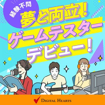 仕事内容 \未経験歓迎!20代~30代が活躍中/ *最新ゲームやアプリの『開発』に携わる! *経験不問!ゲーム業界への第一歩目に◎ *平日週3~5日勤務!Wワークも歓迎! *オシャレ自由!自分らしいスタイルで♪ 【仕事内容】 家庭用ゲームやスマホアプリのバグや不具合をチェックするアルバイトテスター業務をお任せします! ~~ 基本的なお仕事の流れ [1]未発売の家庭用ゲームやスマホゲームの仕様書を見ながら実際にゲームをプレイ! [2]バグや不具合を発見! [3]バグ発生の経緯や状況をレポート(Excel)に詳しくまとめてリーダーに報告! *ゲームが下手でも問題ありません! *同じ趣味の仲間達とチームを組んで進めるので安心♪ ~~ バグや不具合の例 *ストーリーが急に止まって動かない *キャラクターが変な動きをしている… *ゲーム内のお金を無限に増やす方法がある *特定のボタン操作でゲームが落ちる など ★発売前のゲームをいち早くチェックでき、自分の意見や修正案がゲームに反映されることもあり、やりがいは抜群! 未経験の方でも安心して楽しく仕事ができる環境を整えているので安心してご応募ください◎ ★ゲーム・アニメ・マンガ好きのスタッフが多数在籍しています♪ \\さらに詳しく知りたい方は…// ↓ぜひこちらもご覧ください! https://www.digitalhearts.com/ ★これまでのタイトル実績例も掲載中! ▼新しい発見がおもしろい! 発売前のゲームをプレイできるのでゲーム好きにはぴったり♪ 国内ゲームデバッグシェアNo.1の当社だからこそ、ゲームの種類はとても豊富なので、さまざまなゲームを楽しみながらお仕事をすることができます◎ 慣れてくるとおもしろいバグが見つかったりなど、成長を感じる場面も♪テスターならではのやりがいがありますよ! ▼20代~30代が活躍中♪ 勤務は週3~5日で平日のみ/土日休みのお仕事なので家庭やプライベート、Wワークとの両立も可能です◎さらに今回は「1~3ヶ月の短期可」なのでさらに働きやすい♪ 現在は20代~30代の若手スタッフが多数活躍中!未経験からスタートしたスタッフばかりなのでサポート体制も整っており、安心してスタートが可能です♪ ▼充実した待遇&福利厚生あり◎ 昇給や交通費支給、スタッフ優待(飲食店や買い物、娯楽など)、お友達紹介制度、有給休暇など充実した待遇・福利厚生が整っているのも嬉しいポイント♪ 正社員登用制度もご用意しているので、好きな業界で好きなことを仕事にして長期安定を目指すチャンスもあります◎ 髪型・髪色自由、服装自由、ネイルOKなどおしゃれも自由にしてOK♪ ▼デジタルハーツについて 製品の品質向上と安全なデジタル社会を築くべく、バグをチェックするデバッグサービスを主軸に、セキュリティサービスやテストコンサルティングサービス、ローカライズサービスやカスタマーサポートなど、さまざまなサービスをご提供している株式会社デジタルハーツ。 ソフトウェア開発を支える存在として、業界で確かな地位を築いています◎