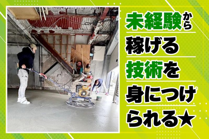 仕事内容 \\新着求人!未経験者歓迎!// ✅最短1カ月で昇給!稼げる職人に! ✅未経験の方も月収26万円スタート! ✅できることが増えるとぐんぐん収入アップ! 「とにかく稼ぎたい!」 「一生稼げるスキルが欲しい!」 という20代若手が稼げる左官職人を目指して 助けあいながら成長しています! 少しでも気になった方はお気軽にお電話ください◎ ⇒090-4036-7652(ヤマモトまで) 【仕事内容は…】 お任せするお仕事は、コンクリートで 床をキレイに整える仕上げ作業! ▼コンクリートを骨組みのすきまに流しこみ ▼道具を使ってひたすら平らにしていく! 基本この流れで作業を行います。 頼れる先輩が丁寧に教えるので 未経験の方も安心して仕事を覚えられます! 作業を行う現場は「関西エリア」で 基本は日帰りで行ける範囲となります。 出張はありません! \楽しく安心して成長できる職場環境/ 作業は5人ほどのチームで行うため、 困ったらすぐ相談できます! お互いに助け合いながら働いています。 どのスタッフも作業中は真剣そのものですが、 休憩に入るとしょーもない話で大盛り上がり♪ 仲間と楽しみ合いながら働ける職場です。 また、関西エリア限定&出張なしなので、 毎日自宅で仕事の疲れを落とせるので、 心も身体も上手くリフレッシュしながら 無理なく楽しく続けられますよ! \やりがいもたくさん/ 新築やリフォーム、増築など問わず、 ショッピングモールに病院、立体駐車場といった 身近にある色んな建物たちの建築に関わるので、 どんな建物もキレイに仕上げられる職人に成長できます。 また、自分が手がけた建物が 街中で立派に立つ姿を見ると、 達成感や職人としての誇りを感じられるように。 形に残る嬉しさを味わえる仕事です。 アピールポイント: ★未経験でも日給1万3000円!月収26万円! ★がんばり次第で最短1ヶ月で昇給あり! ★未経験入社の若手多数!みんなで成長できる! ★出張なし!家族との時間を大切にできます♪ ★髪型・髪色・ひげ・ピアスなど全て自由! 「抜群のチームワーク×安定収入」 という安心できる環境で、 元気に楽しく稼げるスキルが学べます! 入社後まずは 道具の名前や使い方、現場のルールなどを 覚えることから始めていきます。 指導してくれるのは、 入社1年目・2年目・4年目の若手の先輩で 未経験で始める苦労をよく理解している人たち。 そのため、無理のないペースで あなたが分かるまで丁寧に教えます。 1つずつ知識やできる作業を増やしていきましょう。 ―――――――――――――― スキルアップ⇒収入アップに! ―――――――――――――― できる作業が増えると昇給! 技術次第で将来高収入も夢じゃないのが この仕事の強みでもあるので、 稼げる技術を身につけられます。 また、頑張る社員には社長が お小遣いとして手当を支給することも。 日々の頑張りを評価してもらえることも 前向きに働ける理由となっています。 ――――――――――――――― スタッフの人柄も当社の魅力! ――――――――――――――― 気さく&フレンドリーな性格の人ばかりで 仕事終わりには食事に行くなど スタッフ同士の仲の良さもバツグン。 新人さんにも優しく明るく 話しかけてくれる人たちなので、 自然と職場になじんでいただけます◎ / 面接は1回のみ!場合によっては 応募した日に面接もできます! \ すぐに働きたい!という方にもピッタリ◎ 面接の質問は、難しいことは一切なく、 どれも簡単に答えられる内容です! 逆に気になることがあれば、 仕事のことでも給与や働き方のことでも 何でも聞いてくださいね!