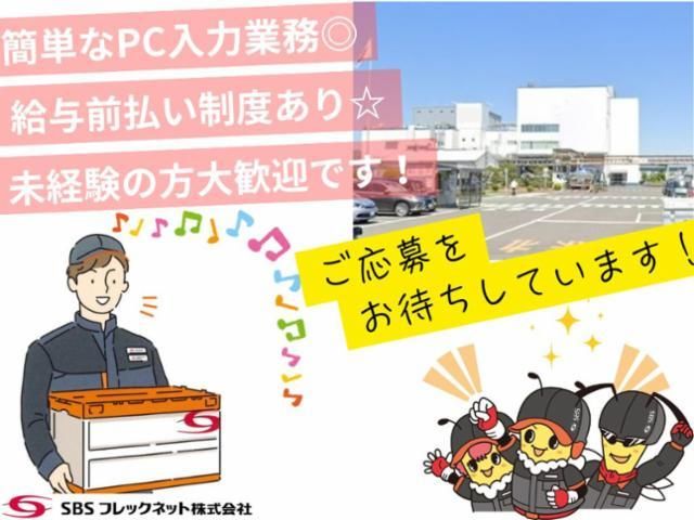 仕事情報 ● 仕事内容 商品の受発注業務やデータ登録などの事務のお仕事です。難しいパソコンスキルは必要ありません。簡単なパソコン作業ができれば大丈夫。事務職未経験の方でも、安心して業務をスタートできます。まずは、管理システムへ入力する業務から、ご自身のペースに合わせながら先輩社員とともOJTをスタートしていきます。 簡単なPC入力業務で安心◎ お客様からの注文を受けて、システムを使用して注文数をデータ入力をしていただきます。決まったお客様と電話対応を行いながら、簡単なPC操作(キーボード入力)が主な業務になります。事務未経験の方も大歓迎です。先輩スタッフが丁寧にお教えするので安心してお仕事を始められます。 給与前払い制度あり☆ 職場内では役職者も含めて全員を「さん」付けで呼びあい、みんなが遠慮なく意見を言い合える環境づくりを心がけています。また、給与の前払いOK!スマホで簡単、支給日前に給与を受け取れます!振込手数料は全額会社負担で、上長承認や理由記載不要。申請後1時間ほどで入金完了いたします。 スタッフの健康をサポート グループの健康保険組合では、常備薬の割引や、24時間健康相談、インフルエンザワクチンの接種の補助など健康を保つためのサービスが目白押し。セカンドオピニオン・医師紹介サービスもしていますので、健康に不安があった際には活用ください。健康的に長く安定して働くことができる職場です。 SBSフレックネットとは SBSフレックネットがお届けするのは、お客さまの生活に欠かせない食品。会社の強みである輸配送全国ネットと、低温管理ノウハウは、お客さまの安心安全な「食の当たり前」を支えます。3温度帯に対応できる会社として、業界トップクラスの品質と実績を持つSBSフレックネットで誇りをもってお仕事しませんか?