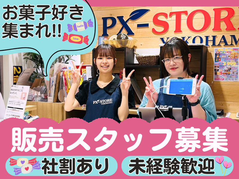 仕事内容 \お菓子好きさん大歓迎!/ 世界のお菓子とチョコレートに囲まれて、 楽しくお仕事しませんか? ✨お仕事の内容✨  ̄ ̄ ̄V ̄ ̄ ̄ ̄ ̄ ̄ おまかせするのは、 店内での接客・販売を中心とした お仕事です。 具体的には、以下のような 店内の作業全般をご担当いただきます。 ●レジでの接客・販売 ●商品のご案内や陳列の整頓、商品管理 ●品出し・検品作業 ●販促POPや値札POPの作成 ●店内清掃 ⏩商品知識は少しずつ覚えていけば 大丈夫です。先輩スタッフが しっかりサポートするので、 未経験の方もご安心ください。 …。…。…。…。…。…。…。…。…。…。…。…。… 【駅チカで通勤らくらく!】 お店は錦糸町駅から徒歩5分なので、 通勤しやすくアクセス便利で安心です。 【未経験歓迎】 先輩スタッフや店長が丁寧に教えます! 接客販売やアルバイト未経験の方でも 安心して始められるお仕事です。 「お菓子が好き」「人と話すのが好き」 「かわいいものに囲まれて働きたい」 こんな思いをお持ちの方からのご応募を お待ちしています。 …。…。…。…。…。…。…。…。…。…。…。…。… 【どんなお店?】 PX-STOREは1992年に横浜で生まれた 「世界のお菓子&チョコレート専門店」です。 世界中から集めたカラフルでユニークな お菓子が並び、「こんなお菓子初めて!」 とワクワクする異国気分の空間。 見て楽しい、食べておいしい、贈って嬉しい ——そんな魅力を手に取りやすい価格で お届けしています。 【PX-STOREが届けたいもの】 私たちはお菓子を通じて、 暮らしに彩りやときめきを 添えることを大切にしています。 カラフルなお菓子に心がはずむ瞬間や、 贈り物で気持ちが伝わる時間。 そんな小さなしあわせのきっかけを 届けたいと考えています。 この思いに共感し、 一緒に行動してくれる方との出会いを 楽しみにしています