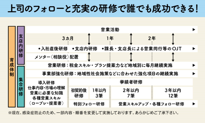 職場環境 《メンター制度(相談役)あり》 先輩社員がメンターとなり、営業スキルの伝授だけでなく、事務作業や働き方のサポート等、メンタル面も相談に乗り、フォローします。 ✨女性管理職多数