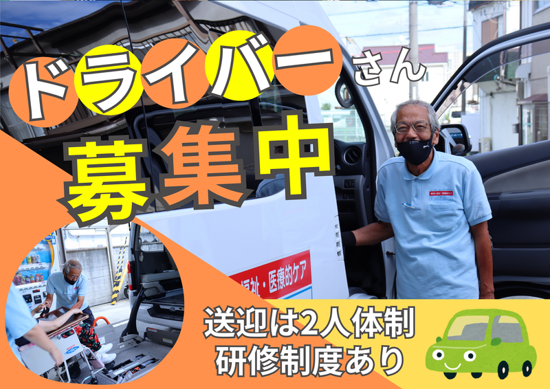 求めている人材 《応募条件》 ・普通自動車運転免許(AT限定可)お持ちの方 ・ハイエースなどワゴン者の運転が可能な方 ・人物重視の人柄採用 ・送迎ドライバーが初めてでもOK ・性別不問 ・中高年活躍中 ・介護資格不問 《歓迎要件》 初任者研修や実務者研修など所有者