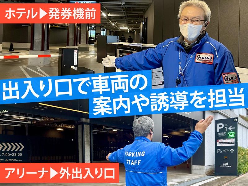 仕事内容 ミュージックテラス敷地内の 「有名ホテル」・「Kアリーナ横浜」の 駐車場出入り口で車両誘導や接客を行います。 ―――――――――――――――――――― ●「有名ホテル」では ホテルやレストラン利用者の車両に対して、 ・駐車券の発券 ・機械式駐車場に向かうよう駐車先のご案内 ・スタッフへ「車入りました」など無線共有 …等の業務を行います。 発券機でお客様の来車を待ち都度対応します。 ●「Kアリーナ横浜」では 土日祝を中心としたライブなどイベント開催時 に対応◎完全予約制の一般車両に対応します♪ ・「駐車場を予約していますか」と声掛け ・歩行者を優先しながら車両を発券機へ誘導 ・スタッフへ「車入りました」など無線共有 …等の業務を行います。 駐車場出入り口でお客様の来車を待ち、 予約台数が入庫次第、業務は落ち着きます。 ―――――――――――――――――――― 1ポジション1人での業務ですが、 約1時間ごとにポジションを交代し、 定期的にこまめな待機時間も挟みます◎ 随時スタッフ同士で連絡を取り合えるため、 未経験の方もご安心ください♪ オープンしたてのきれいな施設です! オフィスコンビニもある 広々としたきれいな休憩室も完備しています。 ―――――――――――――――――――― ●ネット応募の流れ ・「応募画面へ進む」をクリック ・必須項目を入力 ・応募完了! 応募後は、営業所から電話またはメールにてご連絡をさせていただきます。 ご確認漏れが無いようご注意ください。 ●電話応募はコチラ 080-3706-0956 ― 事業内容 ― パーキング事業【三菱地所グループ】