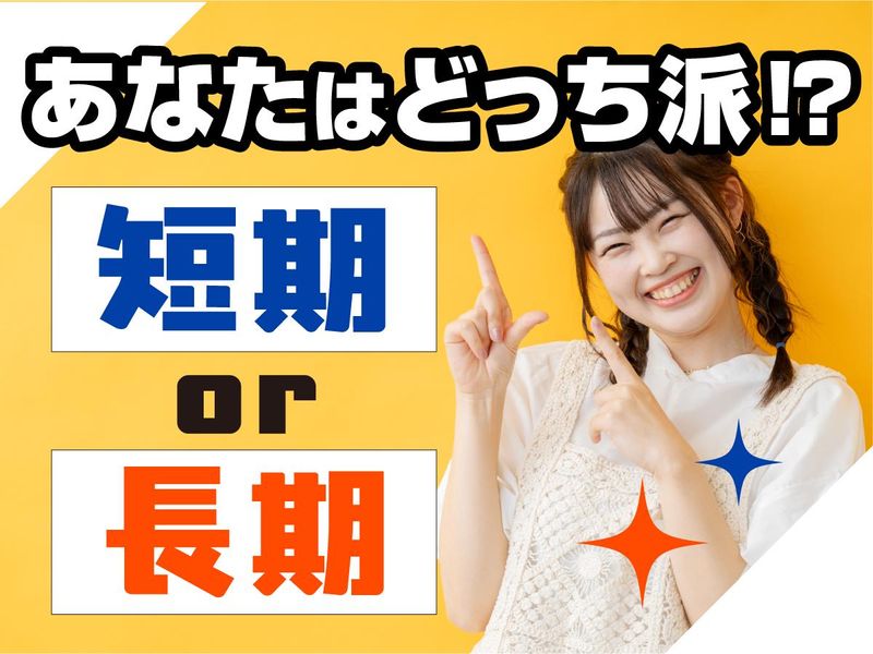 勤務時間詳細 【勤務曜日】 月~金の中で週2~5日のシフト制 (土日祝休み) ※長期は第二土曜日のみ出勤の場合あり 【勤務時間】 (1)8:25~17:15(休憩80分) (2)8:25~12:00(休憩10分) (3)12:55~17:15(休憩10分) ※(2)(3)は週3日以上、短期のみOK 【残業について】 19時まで延長をお願いする場合があります。 (必須ではございません) 【勤務期間】 5月21日or6月2日~7月10日or長期 #時間や曜日が選べる #時間・曜日応相談 #フルタイム歓迎 #週2日からOK #週4日以上OK #長期歓迎 #原則定時退社 #残業なし #平日のみOK #研修あり