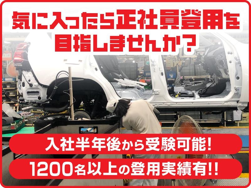 仕事内容 \\ 推し活女子/男子新しい挑戦! // 「好き」をエンジンに「得意」を仕事に。 日野自動車で挑戦してよかった! そんな、未来にしませんか♪ 製造経験はないけど 手先が器用で DIYやハンドメイドが好き… ものづくりに興味がある。 それ、日本が世界に誇る【HINO】 【 日野自動車 】で活かせます! ▼大手ならではの安定・手厚い福利厚生 ✅正社員登用強化中!入社半年から挑戦! ✅入社お祝い金・満了金有! ✅月収30万円以上も可能! ✅寮費無料・家具もそろっています! ✅おいしい食堂有(1食300円~) ┏◆━……────────……━◆┓ 【未経験歓迎・女性活躍中!】 【技術&資格は一切不問!】 未経験者でも大丈夫! 当社には育てるノウハウがあります。 0から確かな技能が身に付きます! もちろん経験者も大歓迎!! ┗◆━……────────……━◆┛ 入社お祝い金・満了金など手当有 【総額】はなんと最大約205万円! 1年満了:最大約115万円 2年満了:最大約205万円! 【仕事内容】 自動車工場での 生産ラインでの製造のお仕事です。 立ち仕事や力を使う作業もございます。 【部品加工の仕事例】 金属部品を機械で削ったり穴を開けたり 設計通りの形に仕上げていく作業です。 専用機械を操作します。 【配属先】 自動車製造に関わる いずれかの工程へ配属します。 (マニュアル完備&安心の教育体制) ・:・:・:・:・:・:・:・:・:・:・:・:・:・:・:・:・:・:・ ▽ 先輩の声をご紹介します! ▽ ・:・:・:・:・:・:・:・:・:・:・:・:・:・:・:・:・:・:・ [正社員になったYさん] 当社でスキルを身に着けて、 正社員登用試験を受けました! 真面目に仕事に取り組めば 誰でもきちんと評価してもらえます♪ 今では推し活資金も十分確保できて、 好きなアーティストのライブにも 参戦し放題です! [女性社員のCさん] 体を動かす工程もあるので、 慣れるまでは大変だと感じることも。 でも、上司や先輩がサポートして くれたので安心して続けられています! 食堂のごはんは安くてとても美味しいですよ♪ 寮も個室だから、 お部屋に推しグッズをたくさん飾って 癒しの空間にしています!