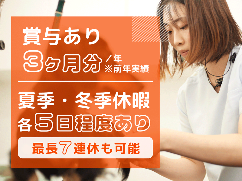 仕事内容 はるひな動物病院では、 「一頭一頭にしっかり向き合うトリミング」を大切にしています。 数をこなすことよりも、動物の小さな変化に気づき、 健康を守ることにつながるトリミングを行っています。 ──────────── 【充実の福利厚生・待遇】 ✅賞与3ヶ月分/年(前年実績) 業界でも高水準の待遇で、スタッフの頑張りに応えています。 ✅連休取得が可能 夏季・冬季に各5日の休暇があり、最長7連休も。 スタッフ同士で業務量を調整しながら、お休みを取得しています。 ✅毎日無料でお弁当支給 昼食は栄養バランスの良いお弁当を病院から提供しています。 ✅キレイなスタッフルーム リラックスできる広々とした休憩スペースを完備。 ランチをとったり、本を読んだり、しっかりリフレッシュできます。 ✅ペットの診察代・フード代の従業員割引制度 飼い主様として診察を受けたり、購入することで、 飼い主様目線で当院を見ていただける機会にもなっています。 ✅パーソナルトレーナー契約(希望者) 体が資本の仕事だからこそ、無理なく働いてほしい。 そんな思いから、希望者はパーソナルトレーナーによる トレーニングを受けることができる制度を作りました。 ──────────── 【お任せするお仕事】 ・シャンプー、カットなどのトリミング業務全般 ・爪切り、耳そうじなどの基本的なケア ・トリミング中の体調、皮膚、被毛のチェック ・気になる点があれば、獣医師・看護師へ共有 ※病院併設のため、医療スタッフとすぐ連携できる環境です。 ──────────── 【はるひなのトリミングの特徴】 ・1日のトリミング頭数は平均3頭弱 無理に詰め込まず、時間に余裕をもって対応しています。 ・一頭一頭にじっくり向き合える体制 性格や体調に合わせた、やさしいトリミングを行っています。 ・小さな変化にも気づける環境 皮膚や被毛の異変を早期発見し、医療につなげることもあります。 ──────────── 【職場の雰囲気・体制】 ・トリマー在籍:2名(女性・20代) ・スタッフ同士で相談がしやすく、和やかな雰囲気 ・判断に迷った時も、すぐ相談・フォローできる体制 一人で抱え込むことはありません。 ──────────── 【こんな方に向いています】 ・数よりも「丁寧さ」を大切にしたい方 ・落ち着いた環境で、長くトリマーとして働きたい方 ・体調管理や働きやすさも重視したい方 無理なく、でもやりがいをもって働き続けたい。 そんなトリマーの方に、ぜひ知ってほしい職場です