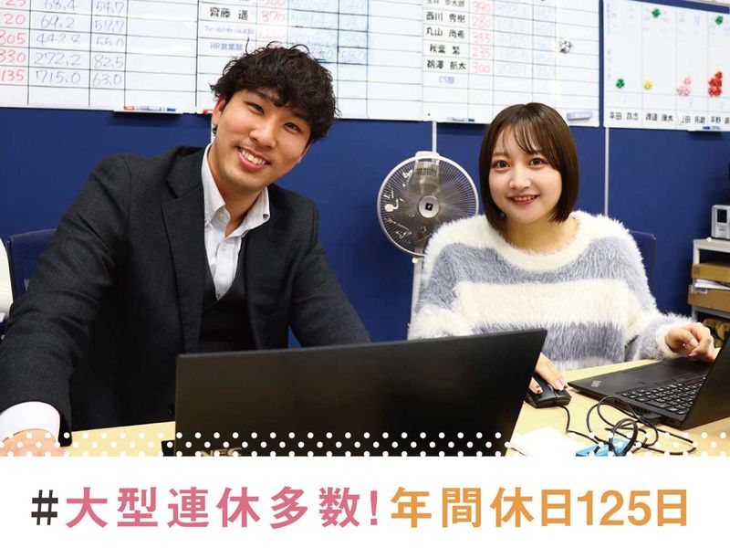 【保険制度】 雇用保険、労災保険、健康保険、厚生年金 待遇・福利厚生 【福利厚生】 ✅賞与年2回/4月・10月 (全社業績・評価で変動) ✅昇給年2回/4月・10月 (個人業績による) ✅インセンティブあり 成績に応じて毎月支給。 4半期で最大20万近く獲得する社員も! ✅出産、育児支援制度 (一部従業員利用可) ✅社用スマホ、ノートPC、Wi-Fi貸与 ✅社外営業研修(費用会社負担) ✅営業交通費全額支給 ✅営業訪問時のレンタカー貸出 ✅通勤交通費規定内支給 ✅達成会:会社の経費で打ち上げ! ✅社員旅行 (過去には大阪・金沢・沖縄等) ✅定期健康診断 ✅インフルエンザ予防接種 ✅401K(個人型確定拠出年金) ✅奨学金代理返還制度