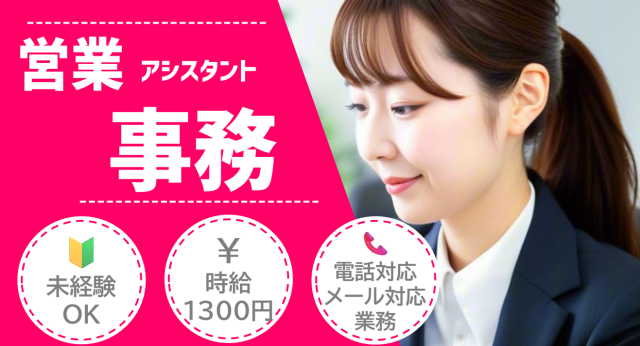 |営業アシスタント|時給1300円☆駅チカで通勤便利♪固定の得意先さまとの電話・メールのやり取りなど