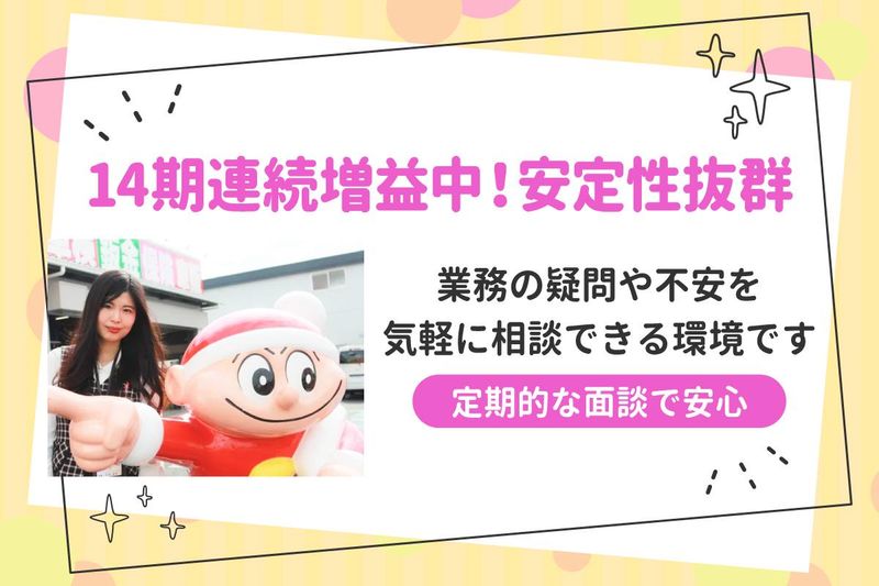 仕事内容 ~・~・~・~・~・~・~・~・~・~ 未経験から保険の専門知識が身につく! 月給24万円〜スタート! 残業ナシ 有給取得率は90%以上! ~・~・~・~・~・~・~・~・~・~ ⭐資格やキャリアを活かして さらなる成長と安定を目指せる仕事! 長期レンタカー専門店 「コバックカリブー小牧元町店」にて、 保険対応業務を中心とした 事務作業からスタートするお仕事です。 経験・スキルに応じて 段階的に業務をお任せします。 保険会社とのやり取りもあり、 資格も活かせます。 キャリア構築やスキルアップも しやすい環境です! 《 具体的な業務内容 》 ◆保険契約に関する問い合わせ対応 (取引先・契約者) ◆社内システムへのデータ入力 ◆契約情報の確認・管理 ◆各種書類の作成・発送業務 ◆郵便物や庶務業務の対応 ◆契約者への保険案内 残業ゼロ!プライベートも充実できます ✨月8日以上休み・土日休みもOK ✨有給休暇の取得率は90%以上の高水準 ✨産休・育休、バースデー休暇あり ◎家庭と両立するスタッフも活躍中! ~・~・~・~・~・~・~・~・~・~ 資格取得・キャリア構築を応援! ~・~・~・~・~・~・~・~・~・~ 昇給・賞与に直結する保険関連の資格取得を 会社が全額支援します。 実務と並行しながら市場価値の 高い専門スキルを習得可能です! また、定期面談があり、 業務上の不安やキャリアについて 人事部に直接相談できます。 安心して長く働ける環境が 整っています! ~・~・~・~・~・~・~・~・~・~ 頑張る人ほど評価します! ~・~・~・~・~・~・~・~・~・~ ⭐昇給・賞与ともに年2回ずつ支給! ⭐年齢や在籍年数に関わらず、 意欲と成果を正当に評価します! ~・~・~・~・~・~・~・~・~・~ 運営会社は順調に成長中! ~・~・~・~・~・~・~・~・~・~ ⭐愛知・岐阜エリアにて急速に成長中 ⭐25年9月に売上高152億達成 ⭐14期連続成長中! ⭐長く安定して働けます! ⭐20代~40代までの若手活躍中! ◎将来を見据えた転職先にもピッタリ ◎最短2週間のスピード選考!