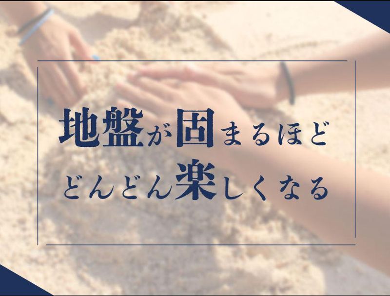 求めている人材 未経験歓迎 学歴・性別不問 20~40代のスタッフ活躍中! 要普通運転免許(AT限定可) 業界知識や地盤、施工についての 知識は一切必要ありません。 人柄を重視した人物重視の採用を行います。 <以下のような方大歓迎> ・自分の意見を素直に表現できる方 ・柔軟で臨機応変な対応ができる方 ・将来のキャリアアップを希望する方 ・プライベートも大切にしながら、しっかり稼ぎたい方 ・営業を基本からしっかり学びたい方 など、みなさん大歓迎です!