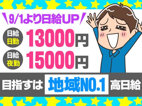 日給13,000円~16,500円 給与 日給 1万3000円~1万6500円 (一律手当を含む) [1] 日勤:日給1万3000円~ [2] 夜勤:日給1万5000円~ ★別途、交通費全額支給 ≪緊急≫日給500円UPしました♪ / 資格保持者や要資格現場では さらに稼げる手当あり!!! \ ・交通誘導検定2級をお持ちの方:日給+500円 ・資格保持者+要資格現場への配属時:日給+1500円 / 日払いシステムもあり!! \ ・急な出費でお給与がスグに欲しい… ・お金がピンチ… などご相談ください! ☆最短翌日払いも可能(規定あり) 交通費:通勤交通費全額支給 【★】直行直帰OK 当社では毎週毎月の定期的な出社はありません! なぜなら、身だしなみチェックは現場で先輩が確認。 勤務シートは郵送でOKだから、自宅⇔現場の直行直帰で大丈夫♪ 【給与例】 給与例 ************** サンエス警備保障で稼ごう☆彡 ************** 一時的な手当より、継続して稼げる高日給◎ サンエスは”交通費を含まない”高い基本給です♪ ◎業界TOPクラスの高日給!だからこその高収入! 「地域でNO.1」の給与と待遇を目指しています。 ◎WワークもOK!空いた時間の有効活用でも稼げます!!