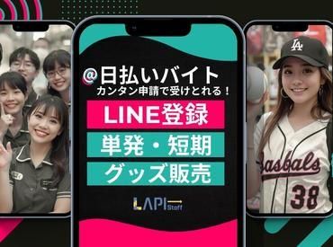 仕事内容 ★☆★オープニング大募集★☆★ 超レア!スポーツイベント×単発バイト♪ ★・゜日払いOK×自由シフト゜・★ ◆◇◆こんなお仕事、待ってました◆◇◆ *プロ野球・サッカーなど大人気イベントで楽しく稼げる♪ *東京・神奈川メインに会場多数! *オープニングだから、み~んな一緒のスタート! #単発1日~ たのしく稼げる!プロ野球・プロサッカーイベントSTAFF♪ ≪お仕事内容≫ ◇グッズやドリンクの販売 ◇チケットもぎり・ご案内 ◇レジ・品出しサポート など ⇒誰でもすぐ覚えられるカンタン作業♪ 未経験さんも安心デビュー☆ スポーツ好き必見のレアバイト☆ オープニングだから仲間もできやすい環境!