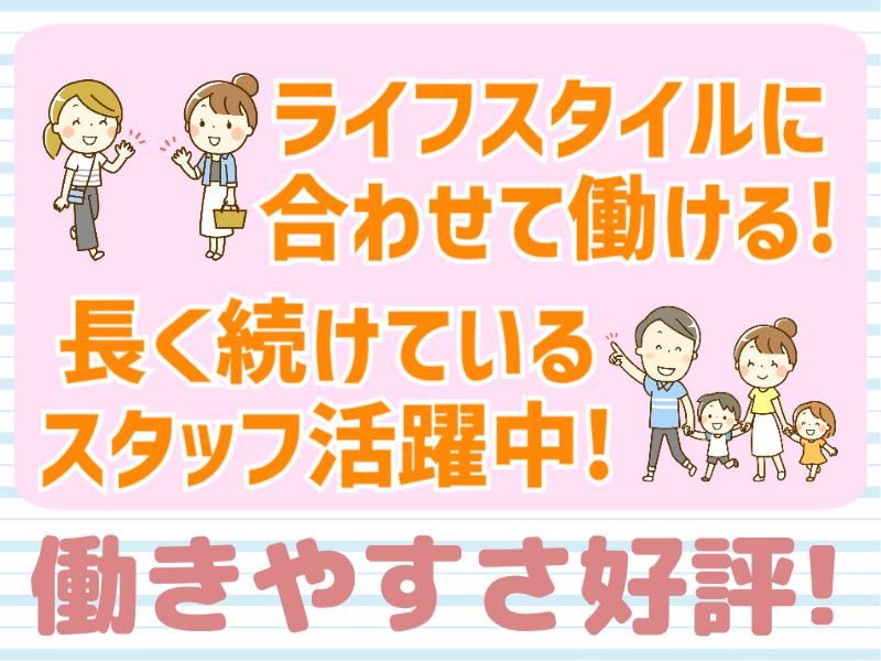仕事内容 ~~★時間選べる★~~ 「午前~15時まで」 「午後からゆっくり出勤」 主婦(夫)・フリーター活躍中♪ 【お仕事内容】 ・クリーニング品の受付 (お預かり・お引渡し) ・レジ業務や仕分けなど <未経験でも安心!> 簡単な軽作業のみで難しい作業なし! 先輩たちが丁寧に教えてくれるので 初バイト・お仕事復帰にもピッタリ◎ 品物を丁寧に扱えて、 笑顔でお客様対応できればOKです♪ ++【オススメPOINT!】++ ■主婦(夫)さんに *午前に働いて子供が帰宅する前に終了! or 午前は家事を済ませて午後からお仕事! *学校行事なども柔軟に対応OK! *曜日固定だから家族との予定も立てやすい ■フリーターさんに *自分のスケジュールに合わせて働ける♪ ⇒「他のバイトがあるから週4日勤務」 「稼ぎたいから週5日勤務」などOK! *ネイル・ピアスOKで自分らしく働ける! *洋服や洗濯の知識も身について生活に役立つ! ライフスタイルに合わせて、 無理なく続けられるお仕事です! スタッフ同士で協力して働いているので、 家事・プライベートと 両立したい方も安心◎ 実際に、長く続けているスタッフが 多数活躍中の職場です♪