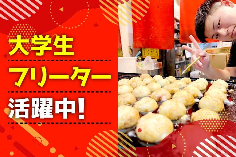 求めている人材 【現在スタッフは10名が在籍しています。】 Wワークで勤務しているスタッフ多数! 20代の学生・フリーターさんがメインで活躍中です! 高校生から働き始めて大学生になっても続けてくれているスタッフもいます。 初バイト&久しぶりのお仕事復帰も応援します。 高校生の方もOKです! 【こんな方は大歓迎です!】 ・Wワークしたい方 ・初めてのバイトにチャレンジしたい方 ・久しぶりのお仕事復帰をしたい方 ・未経験でもチャレンジできるお仕事がしたい方 ・駅チカで通勤便利なところで働きたい方 ・たこ焼きが大好きな方 ・シフト融通がきくところで働きたい方 ・少人数制のお店で働きたい方 ・家庭や学業と両立しながら働きたい方 ・飲食店での勤務経験がある方 ・接客&販売業務経験がある方 ・レジ経験がある方 ・調理補助経験がある方(家事レベルでOK) まずはお気軽にご応募下さい! 面接時に不安なことがあればお伺いしますね!