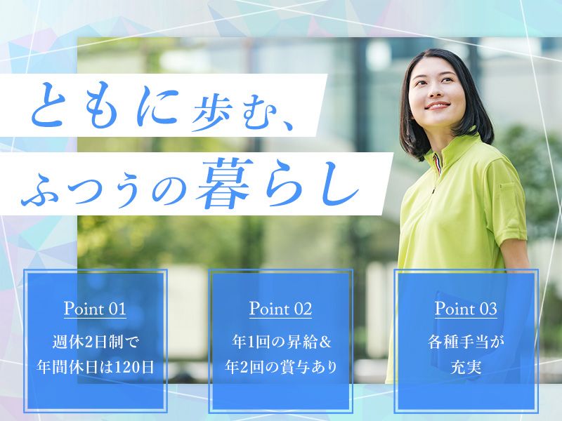 土日休み&年間休日120日!残業は基本なし/賞与年2回!さらに住宅手当や子ども手当など手当充実!