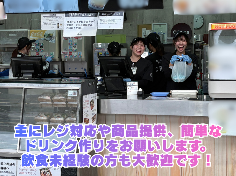 仕事内容 ━━━━━━━━━━━━━━━━━ ⭐地元の方大歓迎の注目バイト⭐ ZOZOマリンスタジアムの 売店スタッフ大募集♪ ━━━━━━━━━━━━━━━━━ スタジアム内にある飲食店 「フードショップ志ん橋」で、 自慢のお弁当や選手メニューを提供! < 具体的には… > 基本的には接客と商品の 受け渡しをお任せします。 < その他 > ✅ドリンク作成 ✅揚げ物の盛り付け ✅スイーツ作り等の簡単な調理補助 ✅うどんと寿司の販売 ✅レジ対応 ✅片付け、清掃 ✅呼び込み ✅洗い物 などもお願いします。 ・―・・―・・―・・―・・―・・―・・―・・―・・―・・―・ \\ はじめての方も大歓迎♪ // 「初バイトでちょっと不安…」 という方もご安心ください!!! 優しい先輩が、イチから丁寧に教えます◎ わからないことも、すぐに聞ける環境です♪ 主婦(夫)の方やフリーターさんも歓迎! 大学生が中心となって活躍しており、 わいわい賑やかな職場です✨ 「野球あまり詳しくないかも…」 そんな方でも全然大丈夫です! お客様と一緒に盛り上がるうちに、 気がつけば詳しくなっちゃうかも…? ・―・・―・・―・・―・・―・・―・・―・・―・・―・・―・ ⭐<ここだけのレアバイト>⭐ 顔なじみのお客様とのやりとりや、 一緒に働く仲間との楽しい時間も魅力! ZOZOマリンスタジアムの賑やかな雰囲気の 中で、地元を一緒に盛り上げましょう♪ 「今年だけ」の短期もOK!! 「2年以上の長期で働きたい」方も大歓迎◎ まずはあなたのご希望を聞かせてください♪