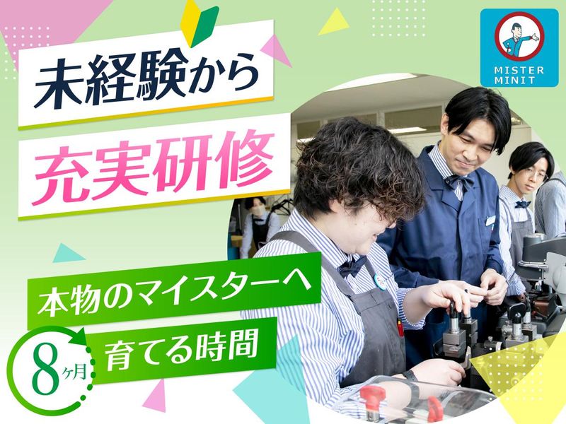 仕事内容 靴・バッグ・時計など、 身近なアイテムを直す専門職! 技術×接客スキルで長期安定! ✅9割の先輩が未経験スタート! ✅技術は不要!人柄重視の採用! ✅全国約255店舗を誇る基盤あり ✅残業月10時間以下でメリハリ◎ ✅賞与年2回&インセンティブあり ══════════════════ ⏩ミスターミニットについて  ̄ ̄ ̄ ̄ ̄ ̄ ̄ ̄ ̄ ̄ ̄ ̄ ̄ ̄ 靴修理や合鍵作製、バッグ修理などの リペアサービスを展開する 「ミスターミニット」。 1957年にベルギーで誕生し、 1972年に日本へ上陸。 現在は駅構内や商業施設を中心に 全国約255店舗の安定基盤を誇る リペアサービスブランドとして 多くのお客様に親しまれています。 お客様の「大切なものを長く使いたい」 という気持ちを大切に考え、 靴やバッグ、時計、合鍵など身の回りの “困った”を解決! お客様の大切な品物を 蘇らせるサービスを通して、 安心と笑顔を支え続けています。 ══════════════════ ⏩仕事内容  ̄ ̄ ̄ ̄ ̄ ̄ 店舗での接客を中心に、 靴やバッグの修理、時計の電池交換、 合鍵作製を担当していただきます! 【具体的には】 ■靴・スニーカーの修理 ■バッグや傘などの修理 ■合鍵の作製 ■時計の電池交換 ■修理受付・レジ対応 ■お客様への修理内容のご説明 ■店内の整理整頓・清掃 お客様の大切な靴やバッグを もう一度使えるようにすることで、 「ありがとう」を直接いただける やりがいの大きなお仕事です! ══════════════════ ⏩入社後の研修体制  ̄ ̄ ̄ ̄ ̄ ̄ ̄ ̄ ̄ ̄ 最初は本社で座学と基礎技術を学び、 簡単な修理からスタートします! 店舗配属後は先輩が横に付いて、 実務の中で個別にレクチャーを実施。 5〜6ヶ月経過後を目途に、 応用修理やミシン作業にも挑戦! 最初は上手くいかなくて当たり前。 何度も練習を重ねていくたびに、 "できること"が増えていきます。 ゆくゆくは 「○○さんに直してほしいです!」 なんて言われるようになれば一人前! 「もう履けないと思ってました…」 「こんなにキレイになるなんて!」 そんな風に頼られたり感謝されることの 喜びを強く実感できるお仕事です! ══════════════════ ⏩様々な前職経験を持つ先輩が活躍!  ̄ ̄ ̄ ̄ ̄ ̄ ̄ ̄ ̄ ̄ ̄ ̄ ̄ ̄ ̄ ̄ ̄ ̄ リペア(修理)を行う仕事になりますが、 同時に『接客業』でもあります。 実際、先輩たちの前職は アパレル販売・飲食店・ホテルスタッフ など、全くの異業種からでした。 知識や技術は後から身に付けられます。 しかし、真摯でひたむきに学ぶ姿勢は お客様から信頼される一番の力。 その想いがあれば、きっと活躍できます! ══════════════════