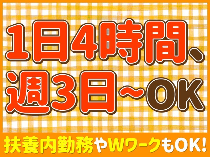 勤務時間詳細 6:00~14:00 又は 7:00~15:00 *1日4時間~、週3日~OK! *平日のみOK! *土日入れる方歓迎 *残業なし