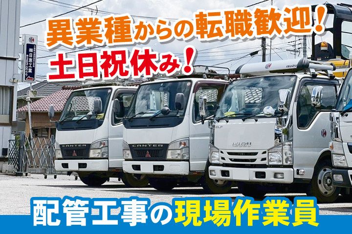 仕事内容 <急募!入社時期は応相談可!> 入社祝い金あり! (会社規定により支給いたします!) 未経験でも正社員で月給35万円~スタート! 残業は少なめで、年間休日が130日以上! 土日祝日もしっかりと休めますのでプライベートも充実! スキルより人柄を重視しています。 経験は問いません。 未経験の方も、少しずつ道具や材料の使い方を学びながら、 ベテランスタッフのサポートを受けながら、 業務を覚えていただけます。 興味をお持ちの方は、ぜひご応募ください。 一般住宅や、道路の上下水道間の引込工事を 1チーム7~8名で行います。 勤務地は千葉市エリアで会社に集合してから現場に向かいます。 「千葉県企業局」の公共工事なので安心・安定の仕事です。 現場作業なのでケガの危険などを注意しますが 基本的に楽しく働くをモットーとしています。 社員同士も仲が良いので、先輩から色々教えてもらえます。 自分のペースで仕事を覚えてください。 コツコツ黙々のタイプの方も良いですが、 みんなで仲良く作業を進めることができます。 <お仕事内容> 創業以来「千葉県企業局」の配水管工事を 主体とした事業を行っている当社で現場作業員のお仕事です。 上水道本管工事の現場監督及び、配管作業などの業務です。 現場は主に千葉市内になります。 朝は少し早起きですが、 夕方には業務終了です。 未経験の方もお仕事に慣れるまで 先輩スタッフがしっかりフォローするので安心。 入社後資格が取得できる支援制度があるので 更にスキルアップしたい方にもオススメです。 中高年シニアスタッフも活躍中! 【株式会社日恵工業について】 おかげさまで創業50周年を迎えることができました。 実績と信頼を礎に、配管工事で地域の未来を支え、 快適な暮らしを守り続けていきます。 当社は働きやすさを重視した 充実の待遇が自慢です。 離職率も低く、働くスタッフを大切にする会社です。 皆さんが働きやすい環境、長く勤めたい、 と思える環境づくりに力を入れています。 【ご応募完了後について】 履歴書(写真付き)・職務経歴書の ご準備をお願い致します。 日恵工業宛に郵送、もしくは下記メールアドレス宛に PDFファイルとしてお送りいただいても構いません。 <nikkei@nikkeisan.co.jp>採用担当宛まで 皆様からのご応募お待ちしております! 企業HP:https://www.nikkei691.com/