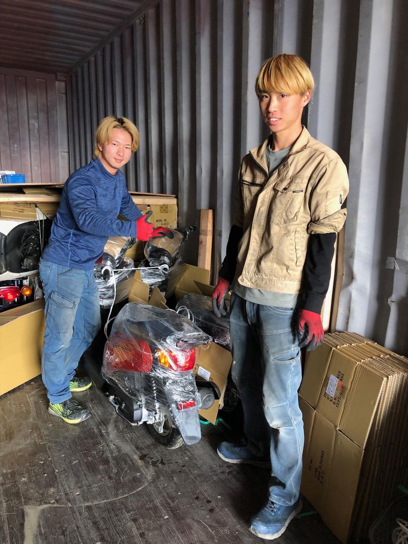 中古バイクの簡単な仕上げとコンテナへの積み込み作業