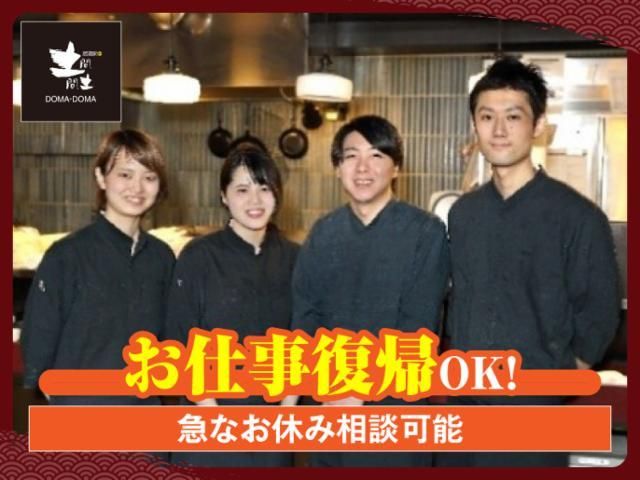 アピールメッセージ 4中旬リニューアルオープン★主婦(夫)活躍中!週2日~OK!平日のみOK!髪型・髪色自由♪履歴書不要 「美味しい」と「楽しい」を届ける仕事!土間土間で、あなたの笑顔と成長が待ってる!最高の仲間と最高のバイト、始めよう!