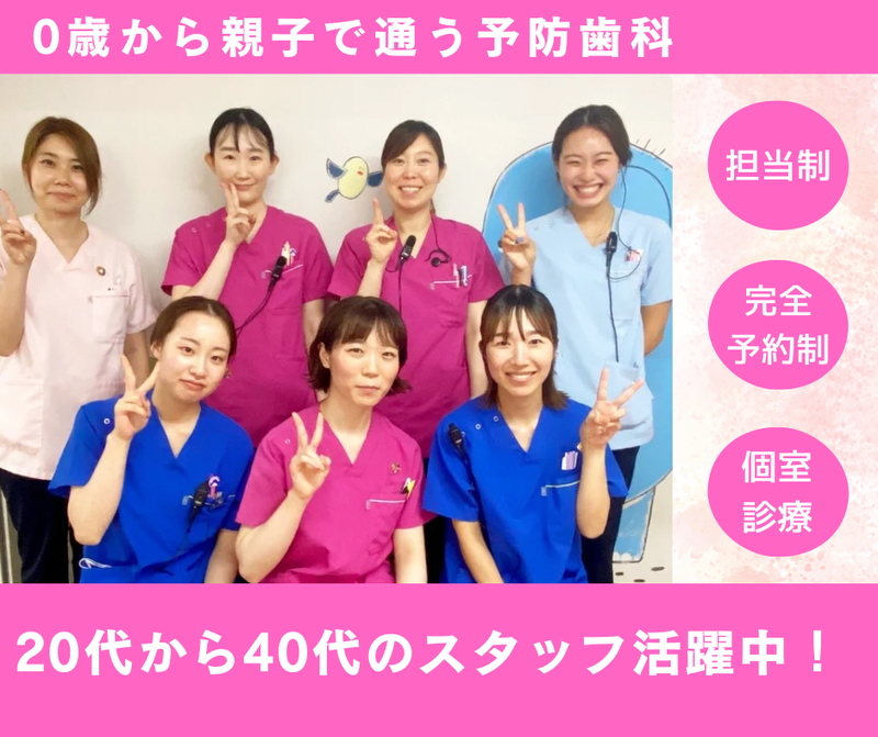 【保険制度】 雇用保険、労災保険、健康保険、厚生年金 待遇・福利厚生 【福利厚生】 目標達成や評価で別途インセンティブ手当あり(年平均2回、1〜3回の実績あり) 交通費支給(月2万円迄)、産休・育休(取得者多数!)、制服貸与、勉強会・セミナー費用支援 <設備充実> ・ユニット10台 (治療ブース、ケアブース、小児ブース) ・デジタルレントゲン ・リトミックもできるキッズルーム ・ブラッシングスペース ・コンサルルーム <衛生管理面も徹底> ・エプロン、手袋、紙コップ等、ディスポを多用。 ・使い捨てができない器材等は専用の機材や薬剤等で滅菌し、使用する直前まで清潔が保たれるように保管しています。
