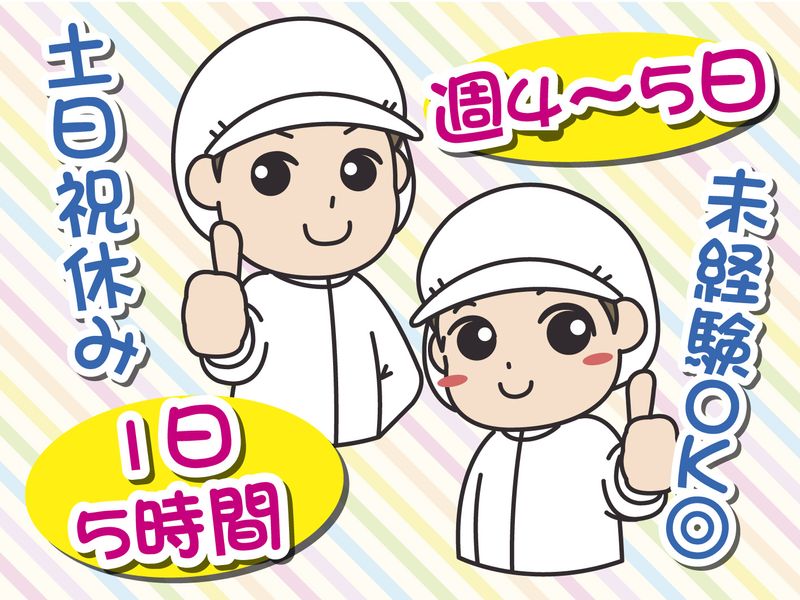 仕事内容 <オススメポイント> ・土日祝休みでプライベート充実! ・人気の日勤のみ! ・1日5時間! ・未経験OK! ・簡単なライン作業! ・週4日~5日! ・扶養の範囲内でも働けます! ・地域密着の安定企業です! ・空調完備の清潔な工場で、快適に働けます! <お仕事について> 製造チェッカー職 こんにゃく製品の箱詰め・梱包などの軽作業をお任せします。 完成した商品の箱詰めやラベルチェックなど、 未経験でもすぐに覚えられるシンプルな作業が中心です。 コツコツ・モクモク作業が好きな方におすすめのお仕事です。 流れてきたこんにゃくを箱に詰める作業を行って頂きます。 箱に20個位入れますので8~15キロ程度になりますが、 運ぶのはパレットまでの2~3m位です。 ラインはローテーションとなります。 ライン作業が初めてでも安心、 難しい作業は無いのですぐに覚えらます! ・男性・女性、20代・30代・40代・50代前半の方が活躍しています! その他求人はこちらから 当社では様々なお仕事をご用意しております。 あなたに合ったお仕事をお探しください。 【URL】https://entori.jp/journalstaff_takasaki お電話でも応募を受付けておりますので、 お気軽にご連絡ください。 【電話番号】0120-791-208