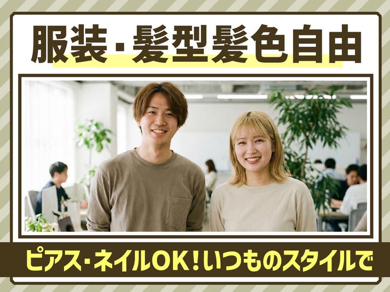 【保険制度】 雇用保険、労災保険、健康保険、厚生年金 待遇・福利厚生 【福利厚生】 ・社会保険完備 ・交通費規定支給(月3万円まで) ・時間外手当(1分単位で支給) ・有給休暇 ・各種特別休暇(有給/無給) ・無料健康診断 ・研修あり ・産休・育休制度 ・正社員登用制度 ※各条件あり 服装:ジーンズ・スニーカーOK・髪型・髪色自由!ピアス・ネイルもOK ※極端に派手な髪色や、ヒールの高すぎる履物などはご遠慮ください 職場環境:休憩室あり(Wi-Fi完備) *ロッカー・冷蔵庫・電子レンジ・給湯設備・自販機あり *昼食の持ち込みOK
